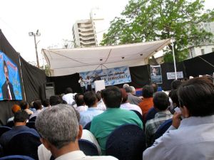 Korta tal hålls av främst kvinnor med samma gemensamma nämnare: den pakistanska konstitutionen erkänner kvinnors rättigheter, men det är inga politiker som implementerar dessa lagar. En ung advokat, som vi kan kalla Farzaneh, håller ett eldigt tal om rätten till utbildning.