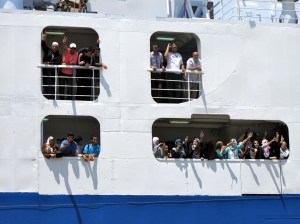 Majoriteten av familjerna fick vänta utanför hamnen i den stekande hettan i över tre timmar innan passagerarna släpptes av. Några hade dock lyckats ta sig fram till skeppet och återförenades med sina anhöriga i ett hav av kramar, skratt och gråt. En äldre mans glasögon gick sönder när hans son kramade om honom.