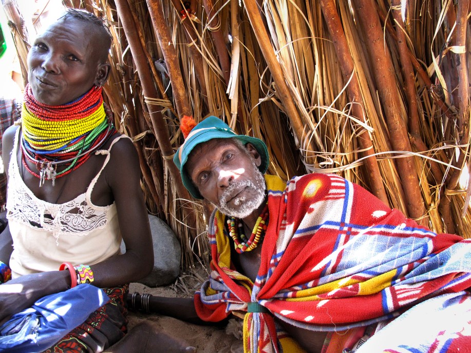 Margret Lopuas och Epeyonons Lochakas lyser båda upp när de berättar om den dagen de gifte sig, livet var inte lätt förr, men den senaste torkan sommaren 2011 gjorde livet mycket svårare för boskapsskötare som Margret och Epeyonon. Byn Kerio, Turkana-provinsen, Kenya.