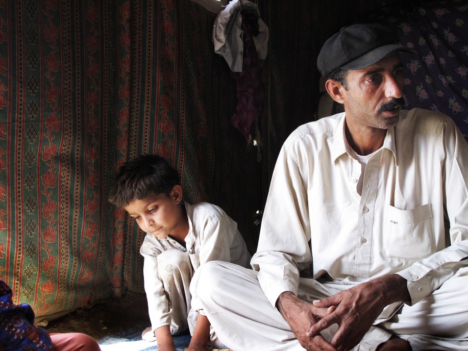 Invånarna i Tent City har valt fram en kommitté som pressar politikerna att bygga hus där tälten står. Gulshar Kosa är kommitténs ordförande: ” Människor här har inga ordentliga arbeten, inga möjligheter att tjäna sitt uppehälle och spara pengar till att bygga ett hus. Det är mycket svårt att leva under dessa förhållanden. Därför tog jag en ed på att jag skulle utföra mitt uppdrag hederligt”, säger han. Utanför Karachi, Pakistan.