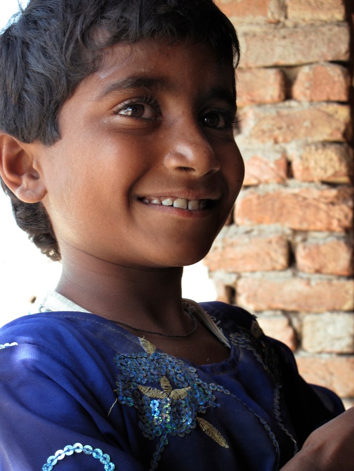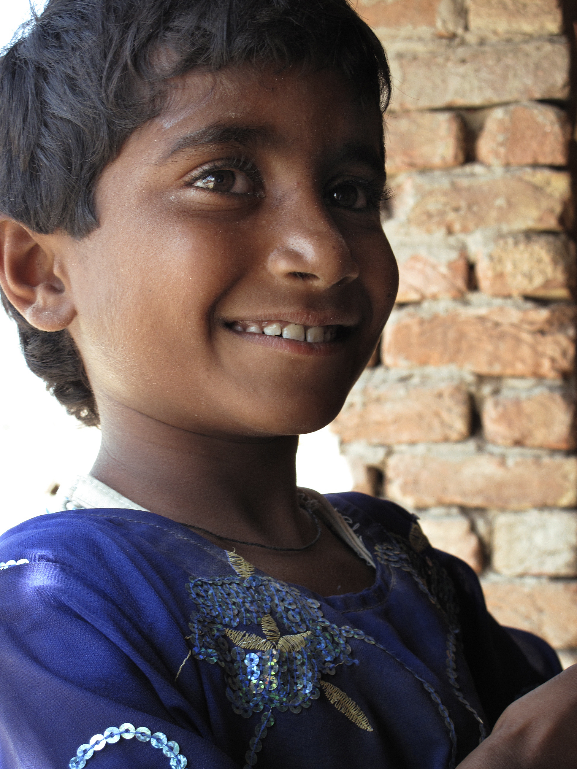 Iram, en av Nasibas barnbarn. ”Mina dockor sköljdes bort. Nu gör jag dockor i lera, men marken är torr så det går inte så bra.”, säger hon. Byn byn Gaber Machi, Sind-provinsen, Pakistan.